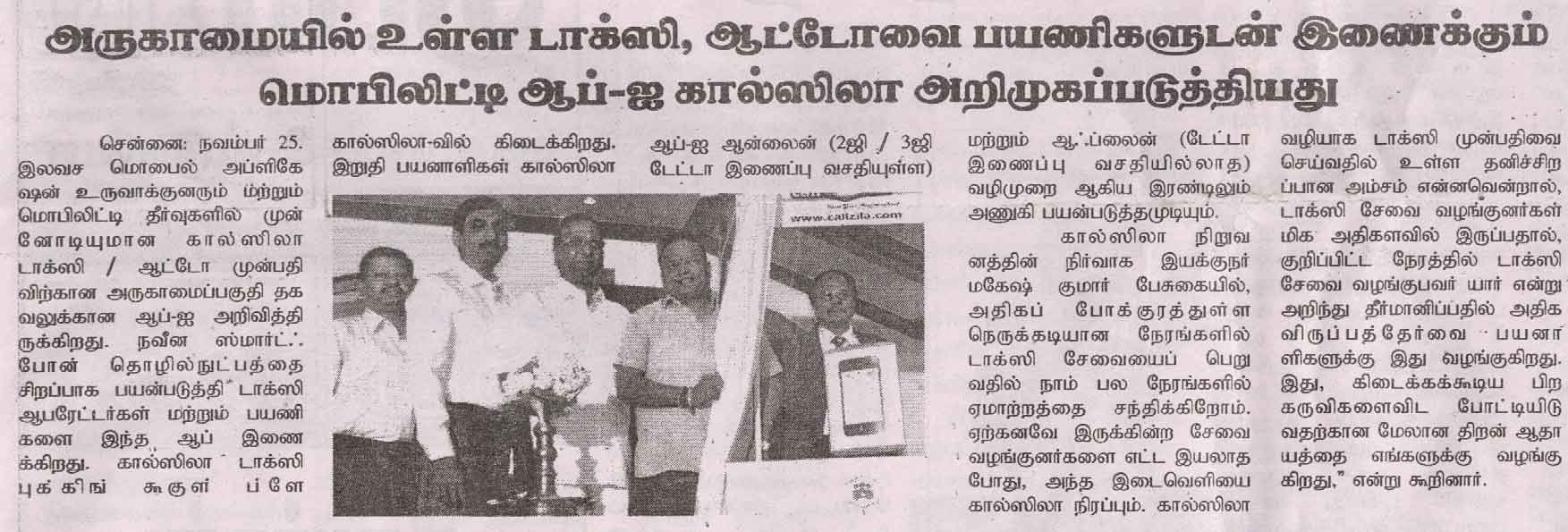 Arukaamail ulla Taxi, Autovai payanikaludan inaikkum mobility app CallZila arimukapaduthiyathu